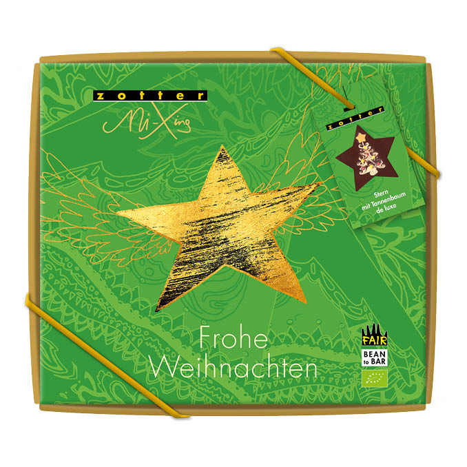 Hõrgu maitsega tumedast šokolaadist šokolaaditäht, mis on kaunistatud magusast valgest šokolaadist tehtud kuusemustriga. Kuuseeheteks on krõbedad granadillitükikesed ja roosasse vaarikakuvertüüri kastetud krõmpsuvad kakaotükikesed, kuuse tipus on väike karamelli-vanilli täheke.