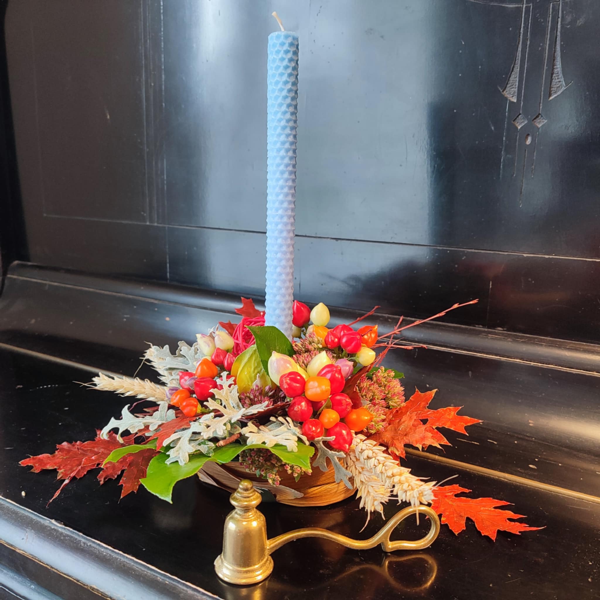Mesilasvahast kroonküünal põleb kaunilt ja on pilkupüüdev lauakaunistus.