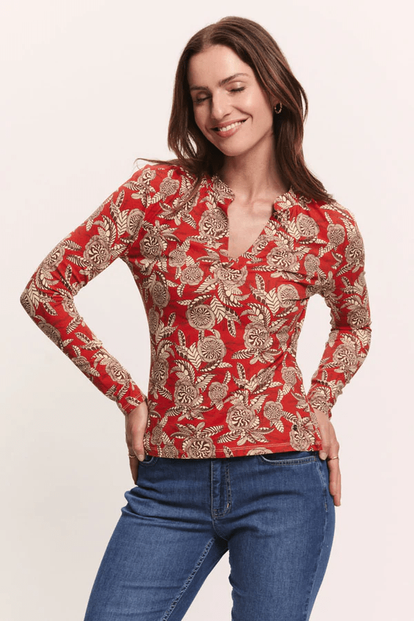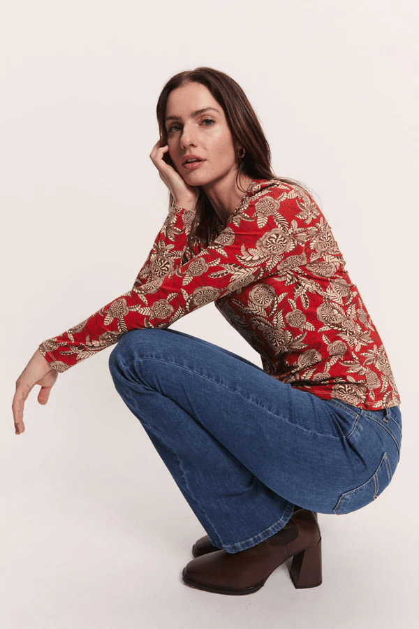 Kaunis pluus on valmistatud jätkusuutlikust EcoVero™ viskoosist – langevast kangast, kaasaegse mustriga. Väike püstkrae V-kaeluses ja kitsad mansetid varrukatel annavad avara lõikega pluusile klassikalise hõngu. Kanna seda stiilset pluusi teksade või ühevärvilise seelikuga. Kerge ja hingav viskoos tagab mugavuse ka pikkadel päevadel.