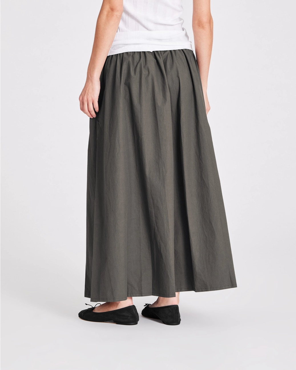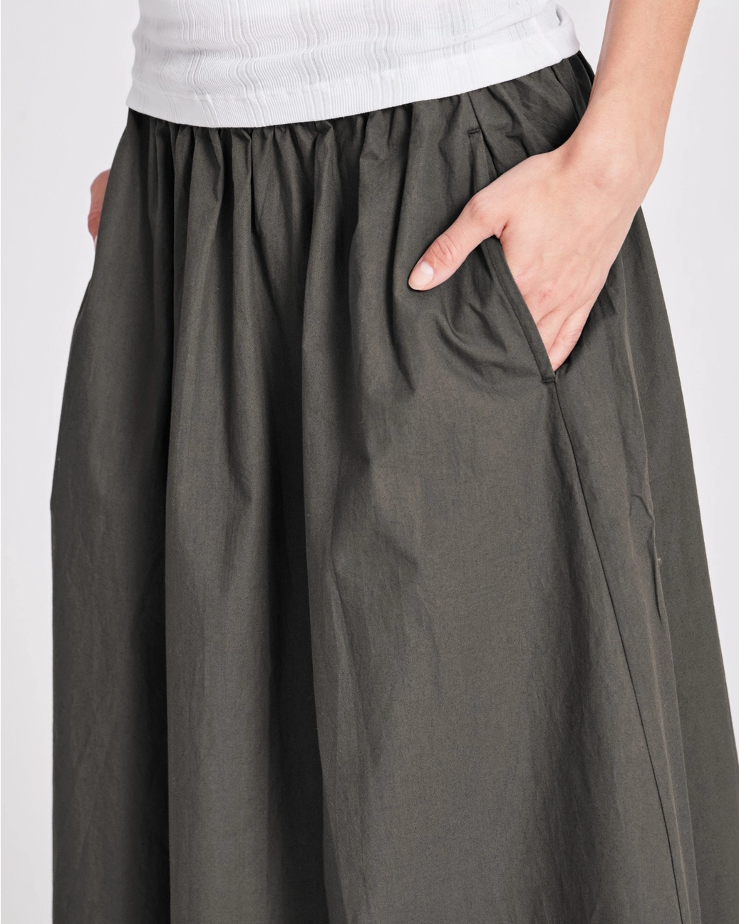 Mugava lõikega pikk seelik on valmistatud 100% orgaanilisest puuvillast. A-lõikelisel seelikul on elastne vöökoht ja küljeõmblustes taskud.