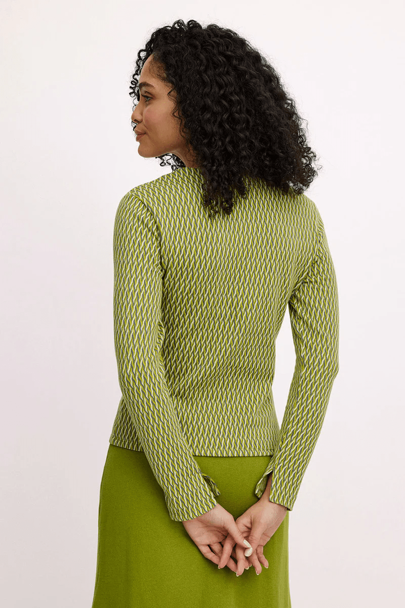 Retro muster ja lihtne lõige teevad sellest trikotaažpluusist tõelise pilgupüüdja. Kaeluses väike sälk, kehasse töödeldud lõige ja lõhikud varrukate äärtes – kokku stiilne ja praktiline pluus, mida on lihtne sobitada nii pükste kui seelikuga.