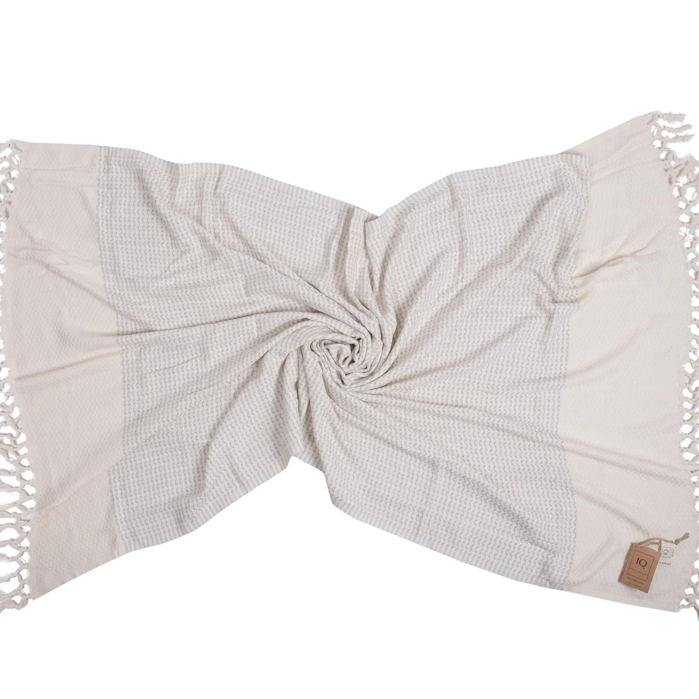 Traditsiooniline hammam rätik on kootud 100% puuvillast (Oeko-Tex® sertifikaat) ja viimistletud käsitööna. See imab väga hästi vett, kuivab kiiresti, on kerge ja võtab vähe ruumi. Colombia kollektsioon lummab peene tekstuuri ja õrnade pastelse mustriga.