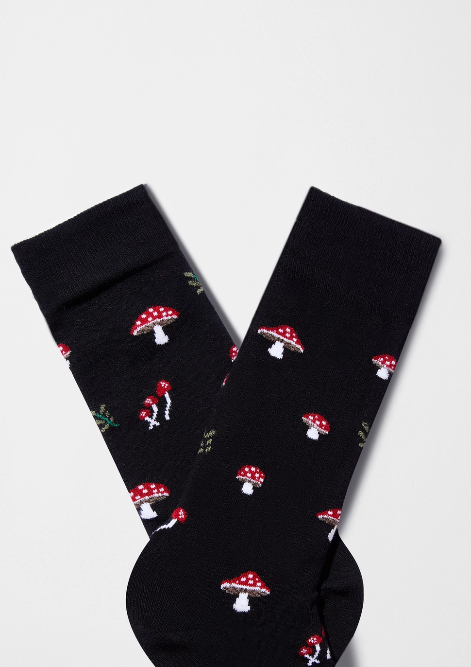 Musta värvi sokid, mida kaunistavad toredad punased kärbseseened. Kand, varbaosa ja sokisääre ülaosa on mustad. Talla all punane BESOCKS logo.