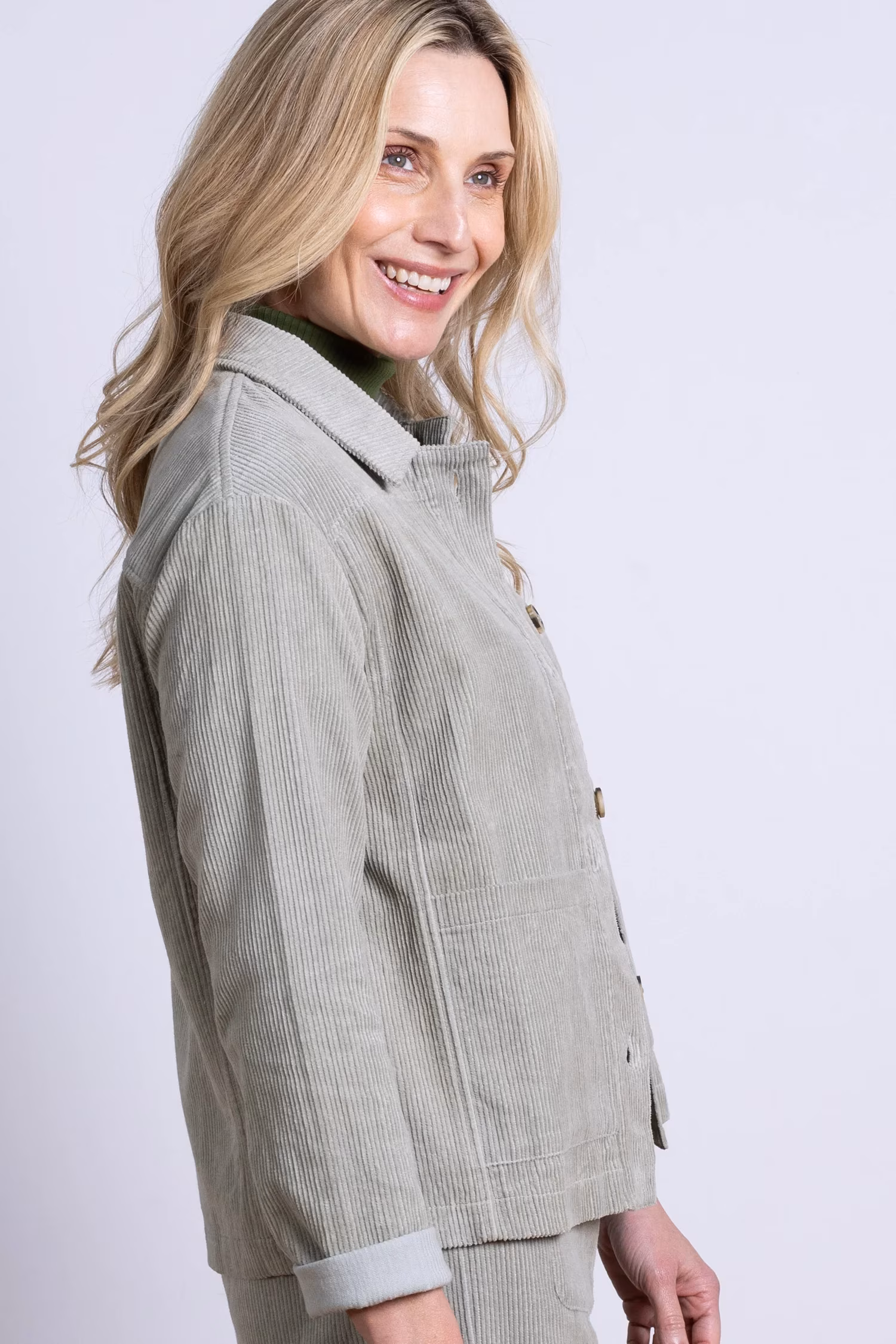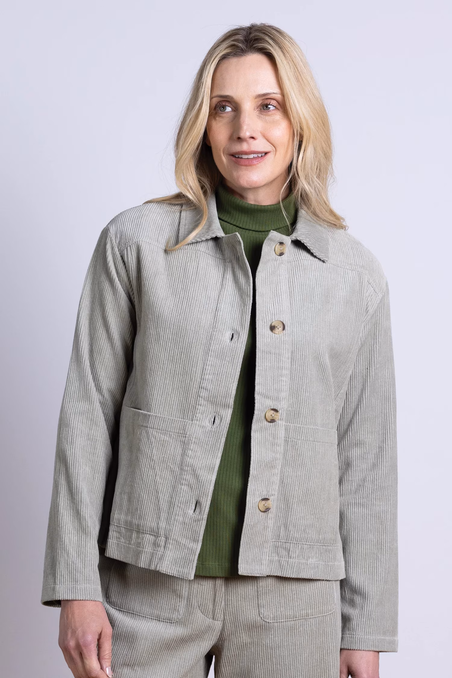 Mugav ja praktiline velvetjakk jahedamateks päevadeks. Pehme, puuvillane velvet on naha vastas mõnus ning hoiab hästi sooja. Jakil on ajatu lõige ja see sobib nii teksade kui ka viisakama riietuse juurde.